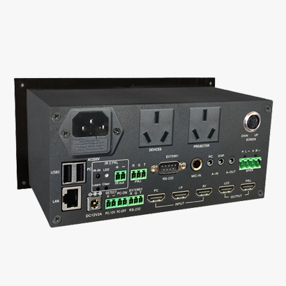 3路強(qiáng)電輸出,可供投影機(jī)、銀幕及電腦等設(shè)備。